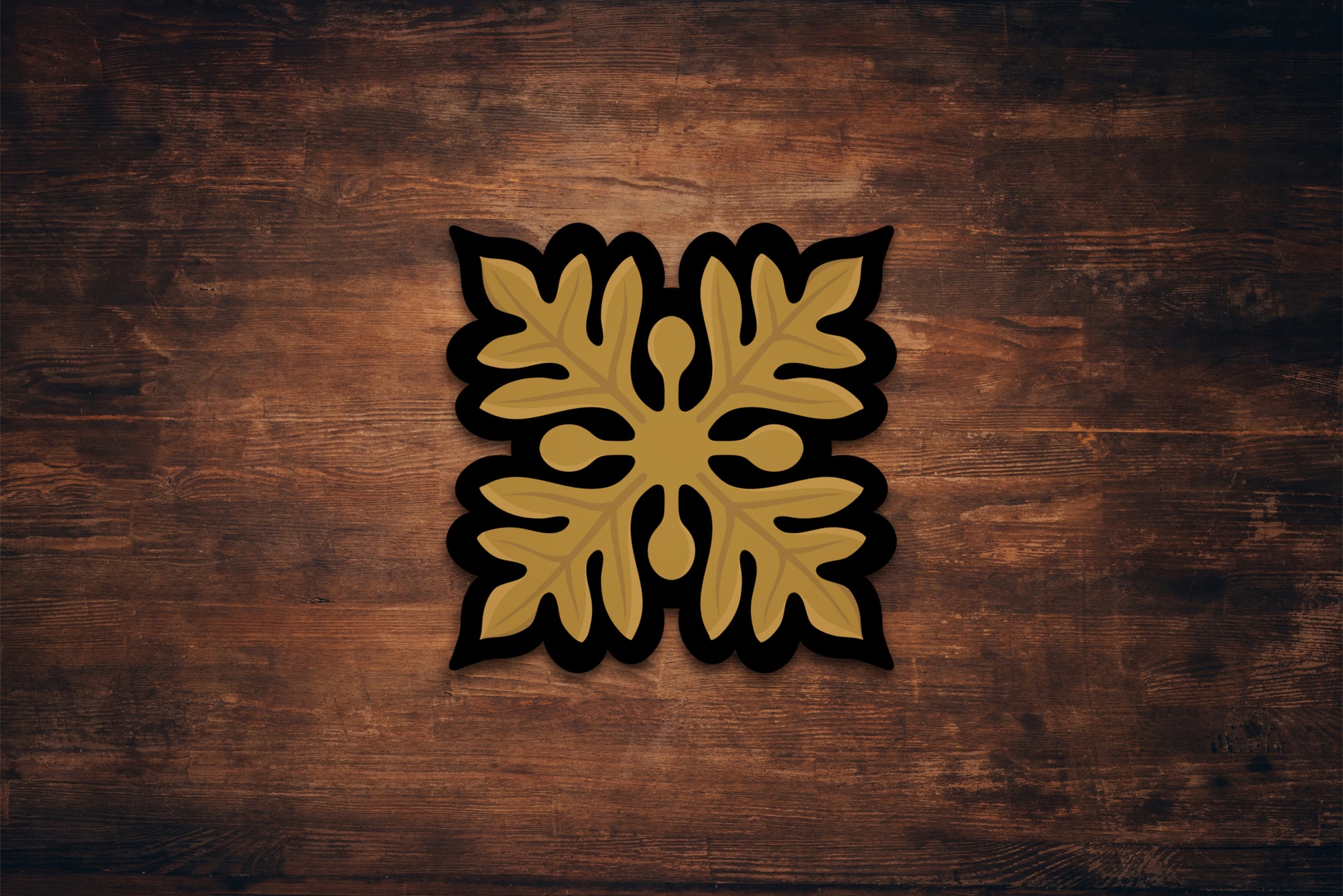 Introducing the Ulu Quilt sticker, featuring a classic hand drawn Hawaiian pattern. This 2" sticker is hand painted and water resistant, perfect for any surface. Add a touch of island charm to your belongings!